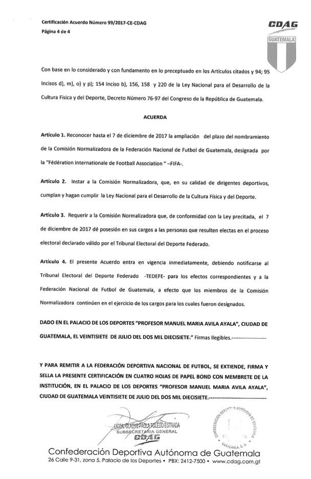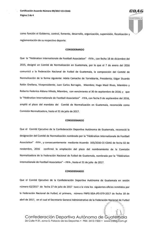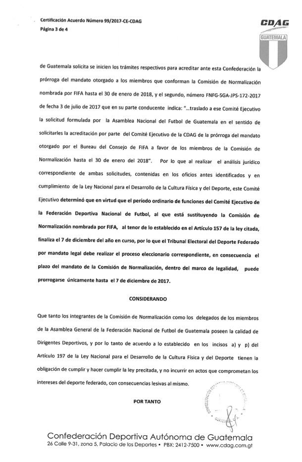 La Confederación Deportiva Autónoma de Guatemala, decidió hoy avalar el plazo de la Comisión Normalizadora,para estar al frente de la Federación Nacional de Futbol.