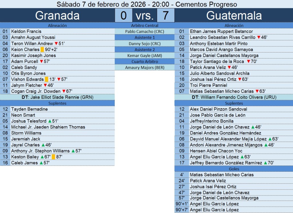 Clasificatorio Concacaf Sub 17 – Granada 0-7 Guatemala – 07/02/2026