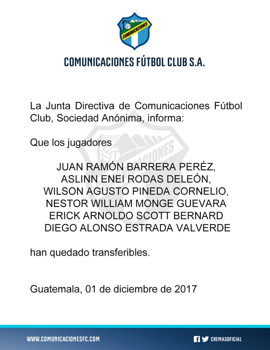 Para ello el equipo anunció que seis jugadores han sido declarados transferibles y que no entran en los planes del entrenador tico, Ronald González, quien ha sido renovado en el puesto para continúar seis meses más en la institución. Estos son los jugadores que han quedado al margen.