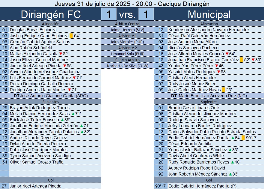 Copa Centroamericana – Diriangén FC 1-1 Municipal – 31/07/2025