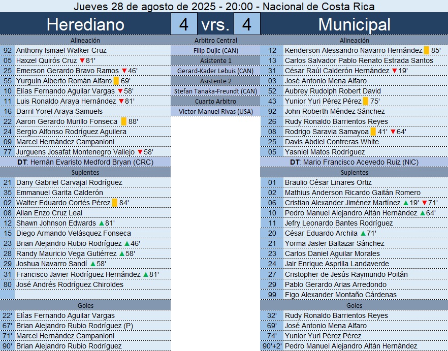 Copa Centroamericana – Herediano 4-4 Municipal – 28/08/2025