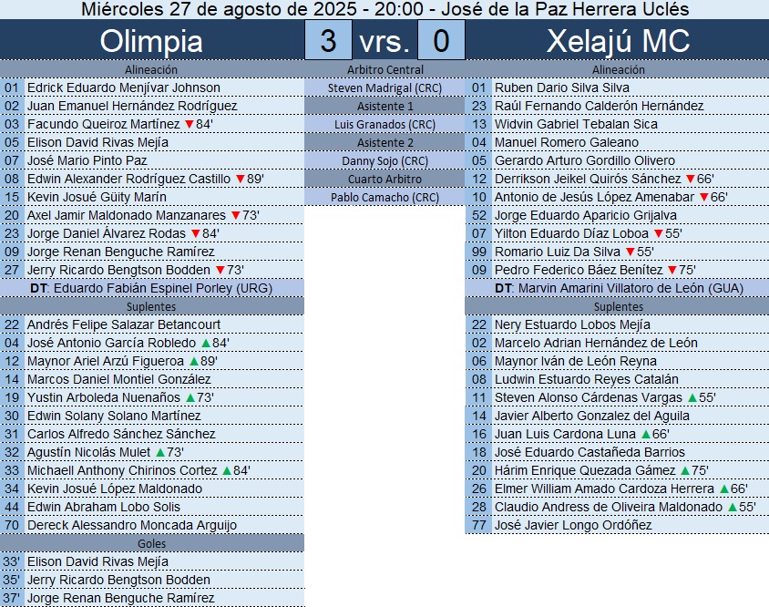 Copa Centroamericana – Olimpia 3-0 Xelajú MC – 27/08/2025