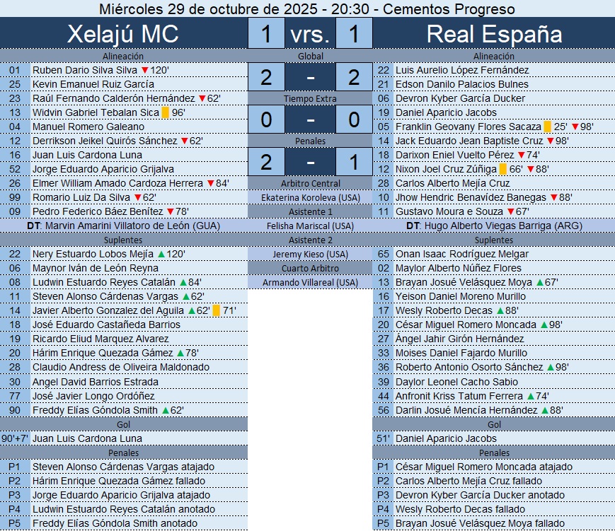 Copa Centroamericana – Semifinal de Vuelta – Xelajú MC 1-1 Real España – 29/10/2025