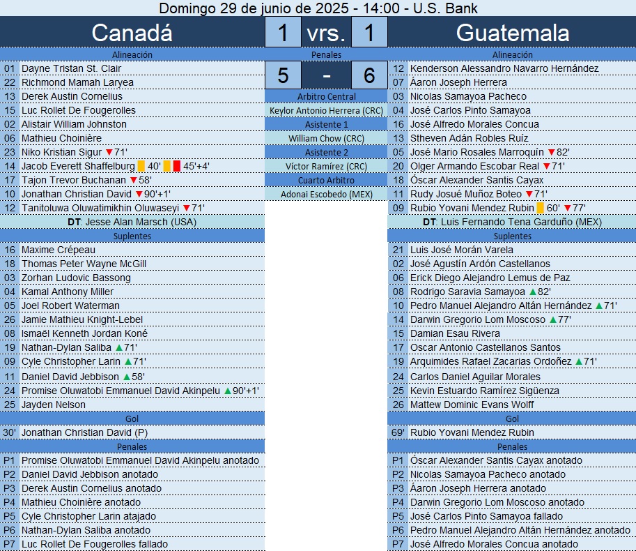 Copa Oro – Cuartos de Final – Canadá 1-1 Guatemala – 29/06/2025