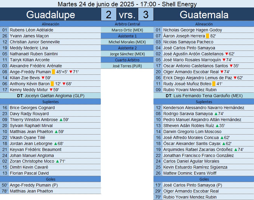 Copa Oro – Grupo C – Guadalupe 2-3 Guatemala – 24/06/2025