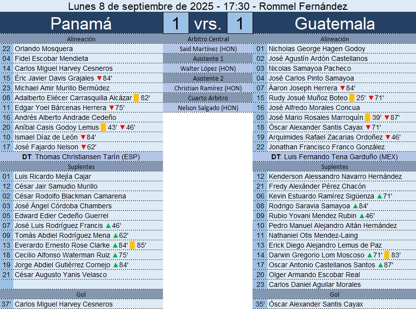 Eliminatoria Concacaf – Panamá 1-1 Guatemala – 08/09/2025