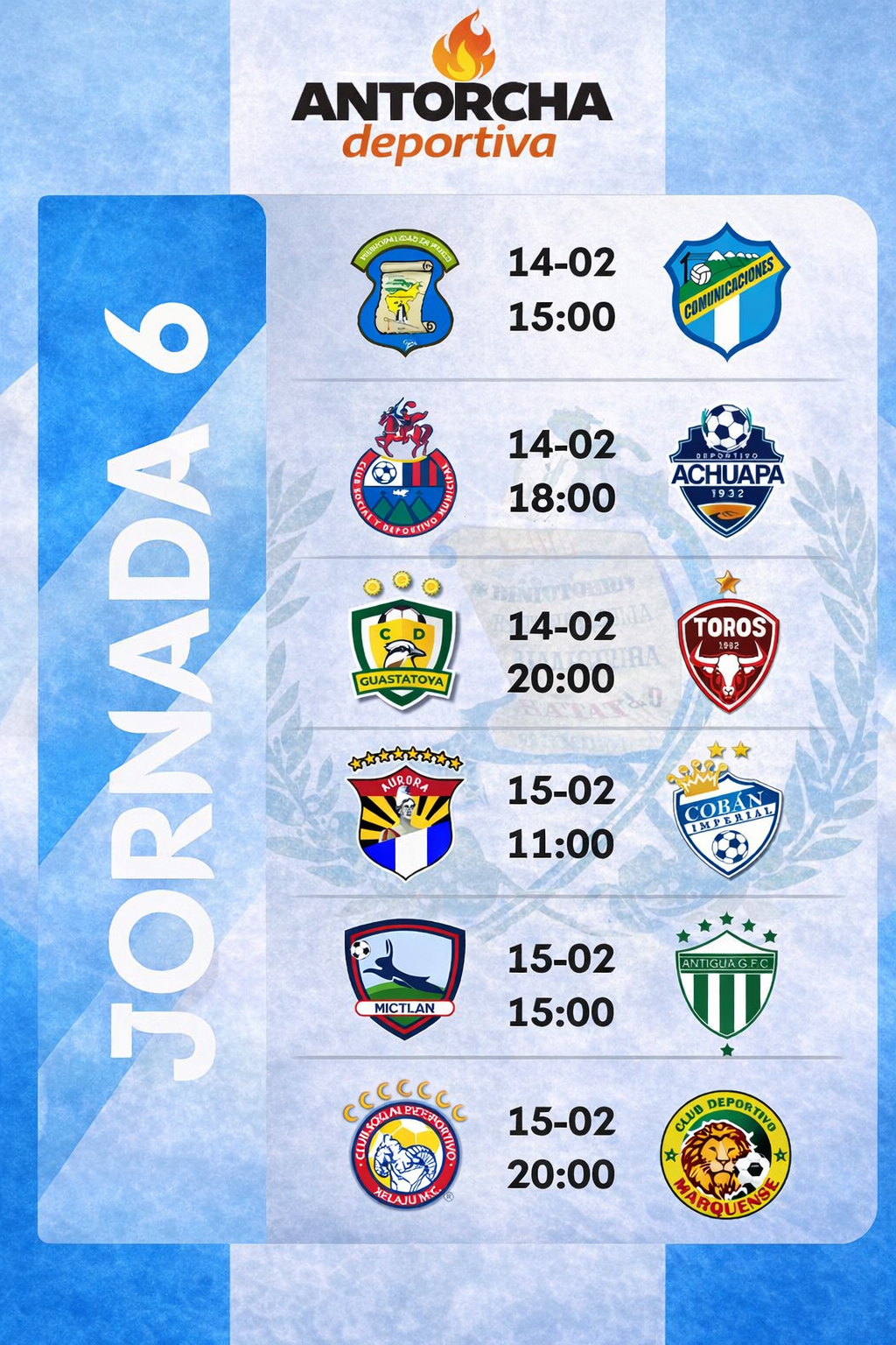 (((FOTO))) Calendario de la Jornada 6 del Torneo Clausura para este fin de semana