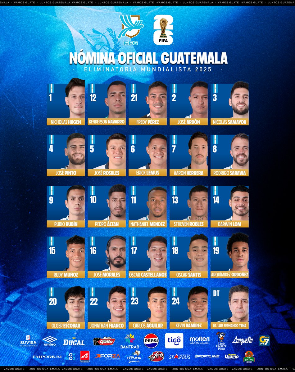 La Federación Nacional de Fútbol de Guatemala (FFG) oficializó la lista de 24 jugadores que buscarán iniciar con pie firme el camino hacia el Mundial 2026. La Azul y Blanco enfrentará a El Salvador y Panamá en la tercera ronda del Grupo A de las Eliminatorias CONCACAF.