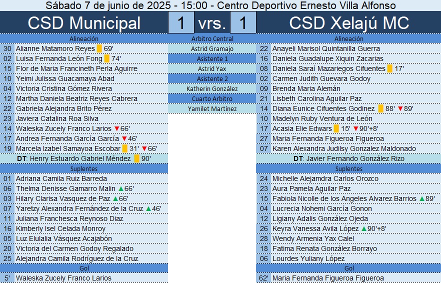 Liga Femenina – Final de Ida – CSD Municipal 1-1 CSD Xelajú MC – 07/06/2025