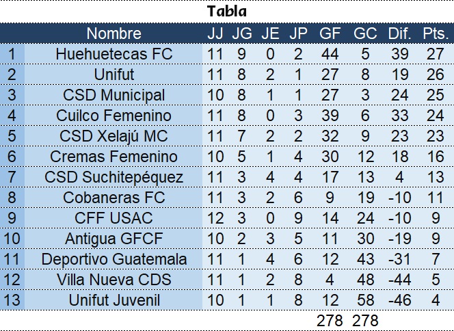 Estadísticas del encuentro entre Cuilco Femenino vs Unifut.