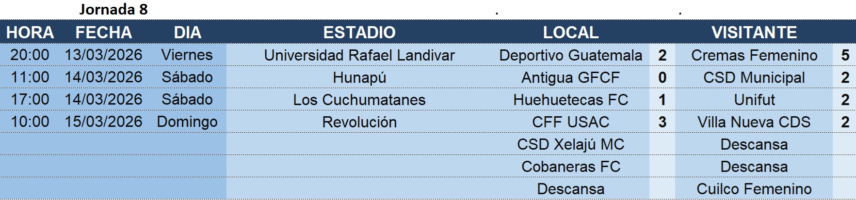 Liga Femenina – Jornada 8 – 15/03/2026