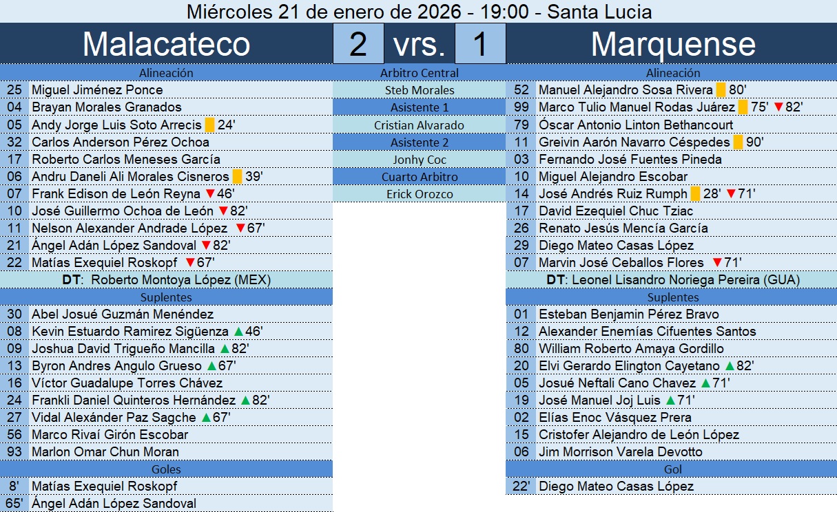 Liga Nacional – Jornada 1 – Malacateco 2-1 Marquense – 21/01/2026