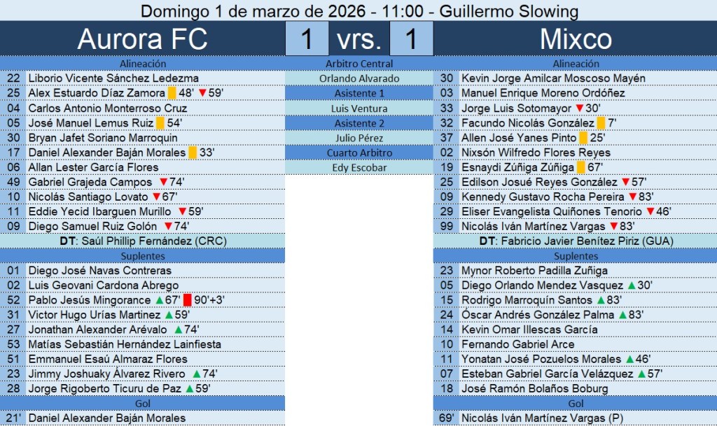 Liga Nacional – Jornada 10 – Aurora FC 1-1 Mixco – 01/03/2026