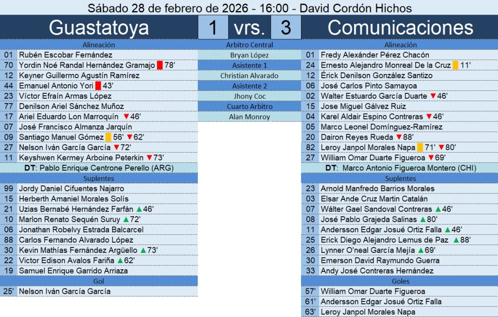 Liga Nacional – Jornada 10 – Guastatoya 1-3 Comunicaciones – 28/02/2026