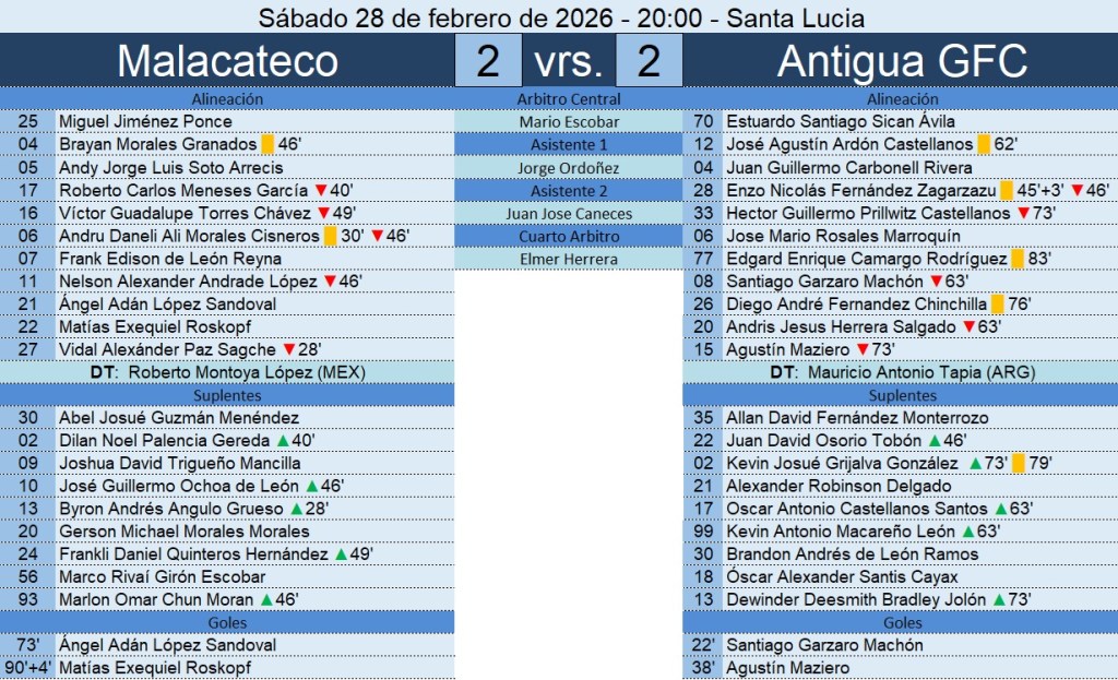 Liga Nacional – Jornada 10 – Malacateco 2-2 Antigua GFC – 28/02/2026