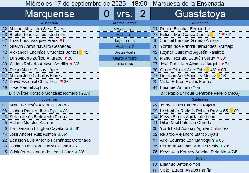 Liga Nacional – Jornada 10 – Marquense 0-2 Guastatoya- 17/09/2025