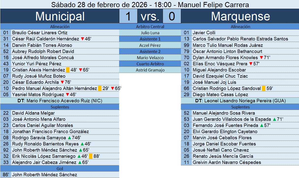 Liga Nacional – Jornada 10 – Municipal 1-0 Marquense – 28/02/2026