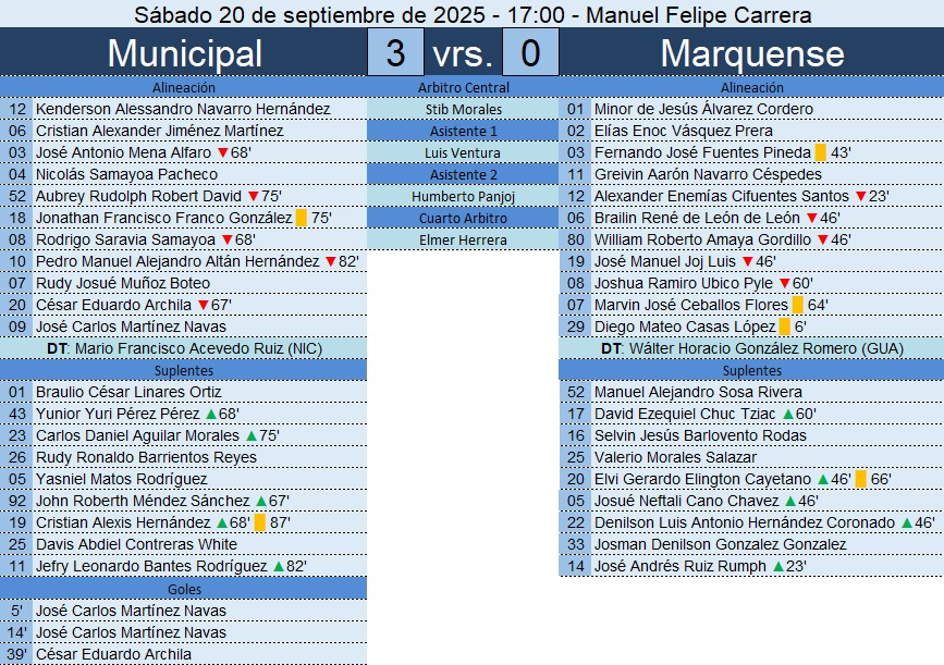 Liga Nacional – Jornada 11 – Municipal 3-0 Marquense – 20/09/2025
