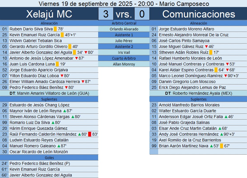 Liga Nacional – Jornada 11 – Xelajú MC 3-0 Comunicaciones – 19/09/2025