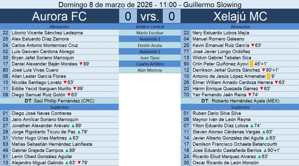 Liga Nacional – Jornada 12 – Aurora FC 0-0 Xelajú MC – 08/02/2026