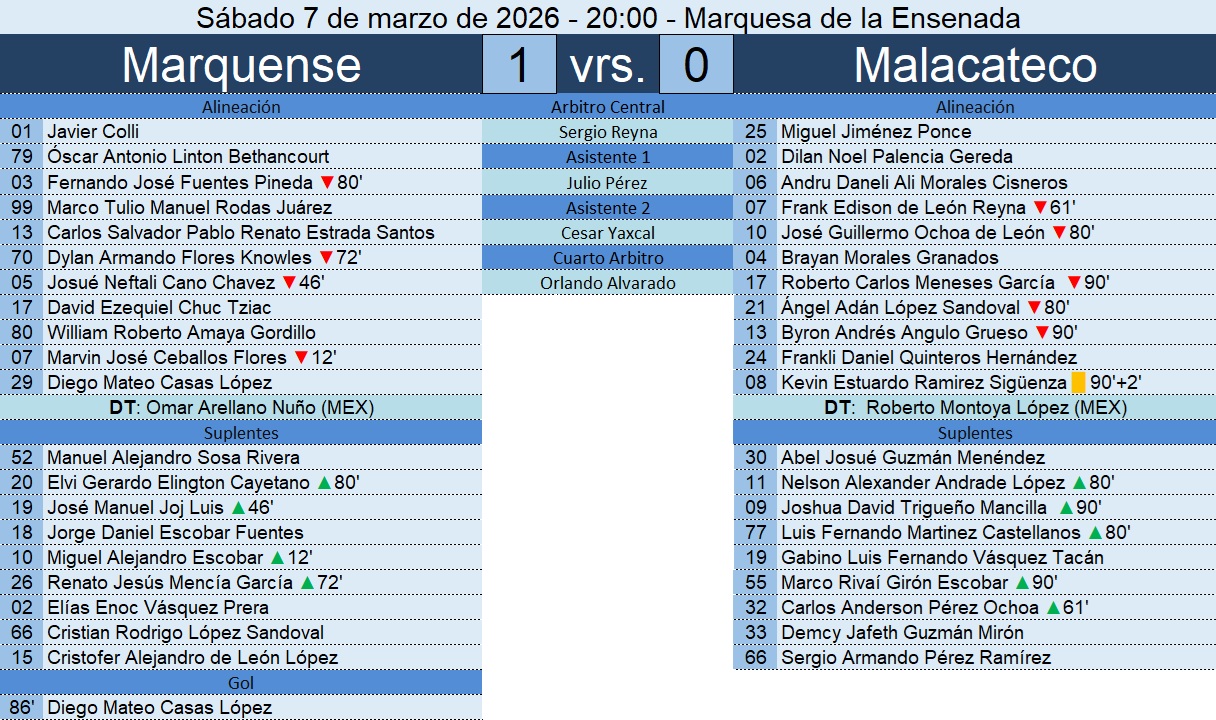 Liga Nacional – Jornada 12 – Marquense 1-0 Malacateco – 07/03/2026
