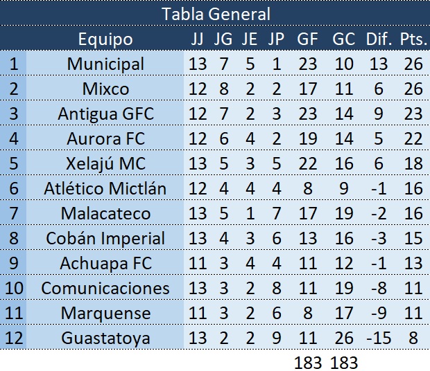 Estadísticas del encuentro entre Municipal vs Guastatoya.