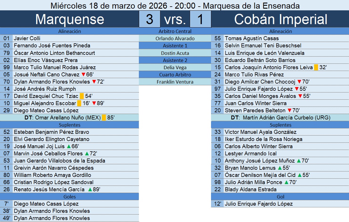 Liga Nacional – Jornada 14 – Marquense 3-1 Cobán Imperial – 18/03/2026