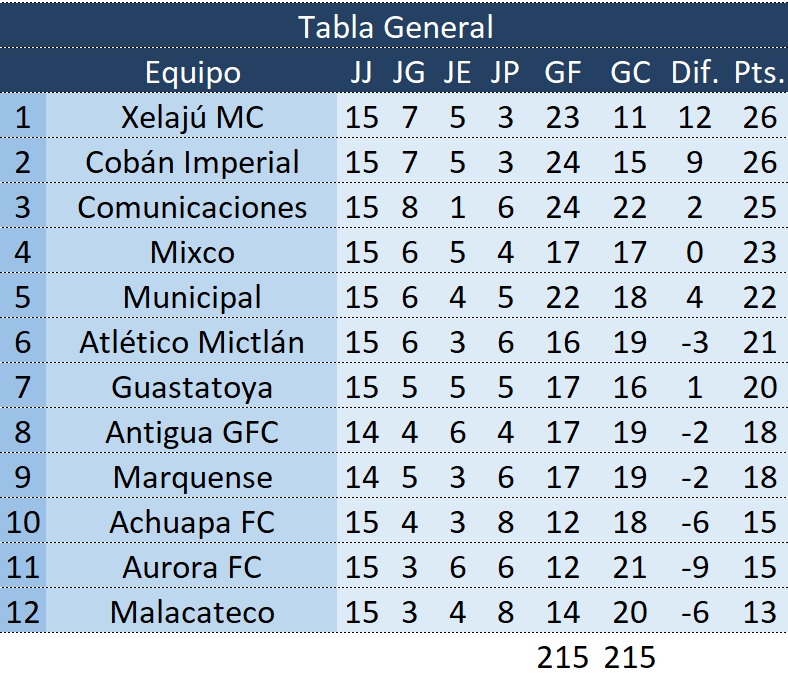 Liga Nacional – Jornada 15 – Comunicaciones 1-3 Xelajú MC – 22/03/2026