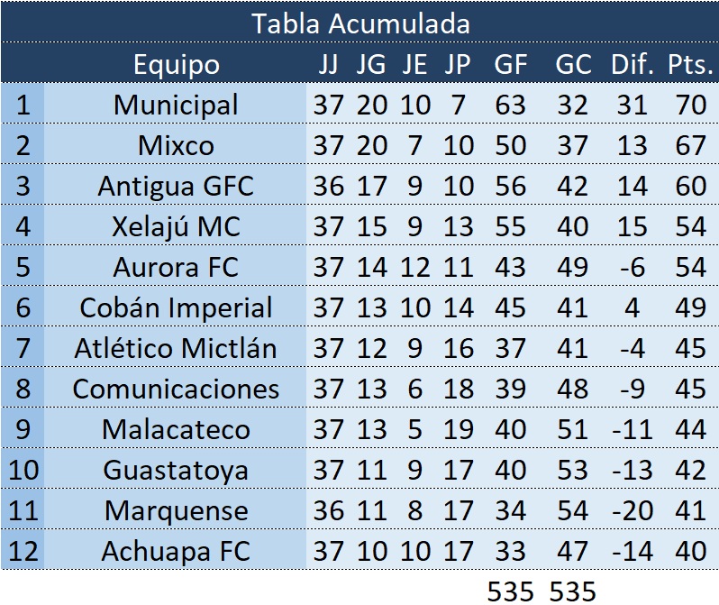 Estadísticas del encuentro entre Guastatoya vs Municipal.