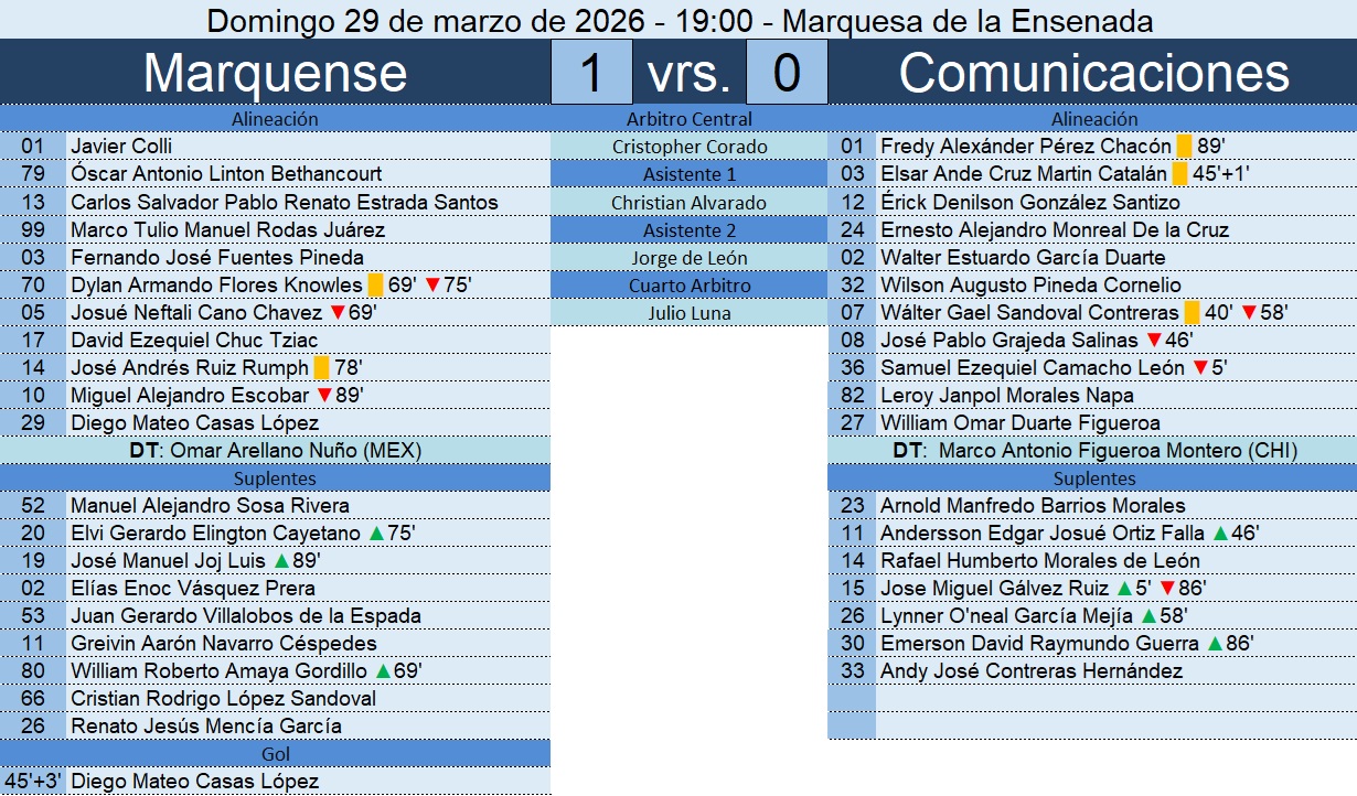 Liga Nacional – Jornada 16 – Marquense 1-0 Comunicaciones – 29/03/2026