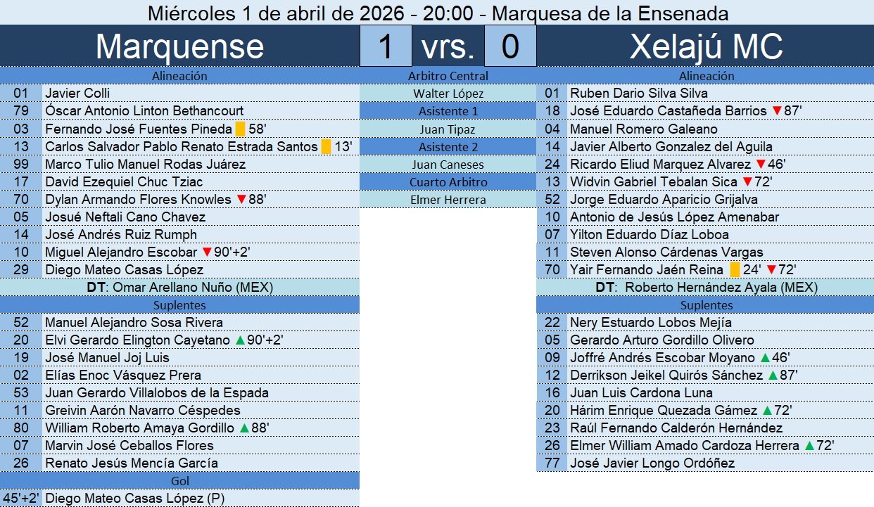 Liga Nacional – Jornada 17 – Marquense 1-0 Xelajú MC – 01/04/2026