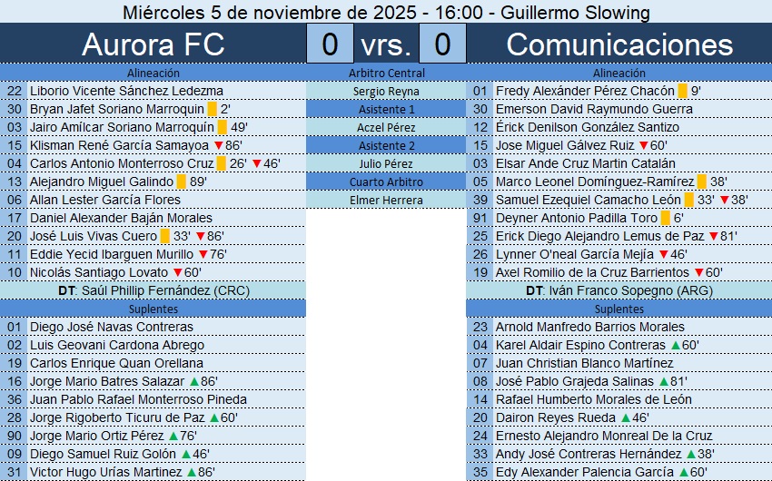Liga Nacional – Jornada 18 – Aurora FC 0-0 Comunicaciones – 05/11/2025