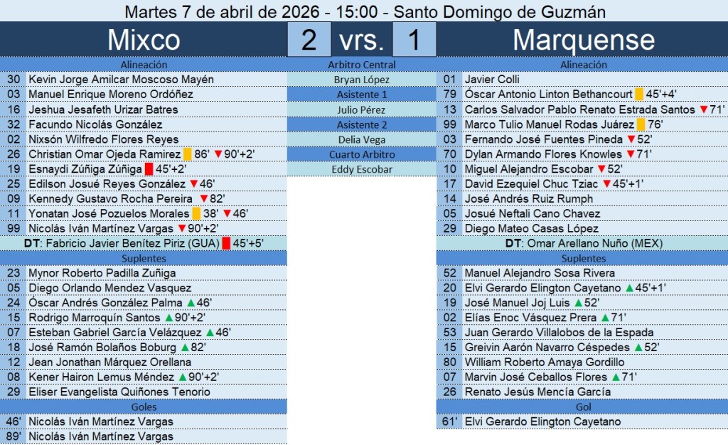 / 1 hora agoLiga Nacional – Jornada 20 – Aurora FC 0-1 Marquense – 15/06/2026