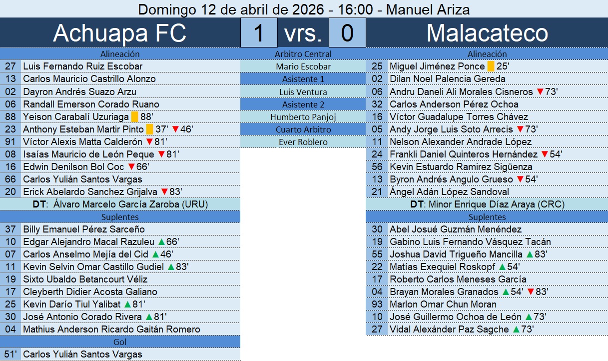 Liga Nacional – Jornada 19 – Achuapa FC 1-0 Malacateco – 12/04/2026
