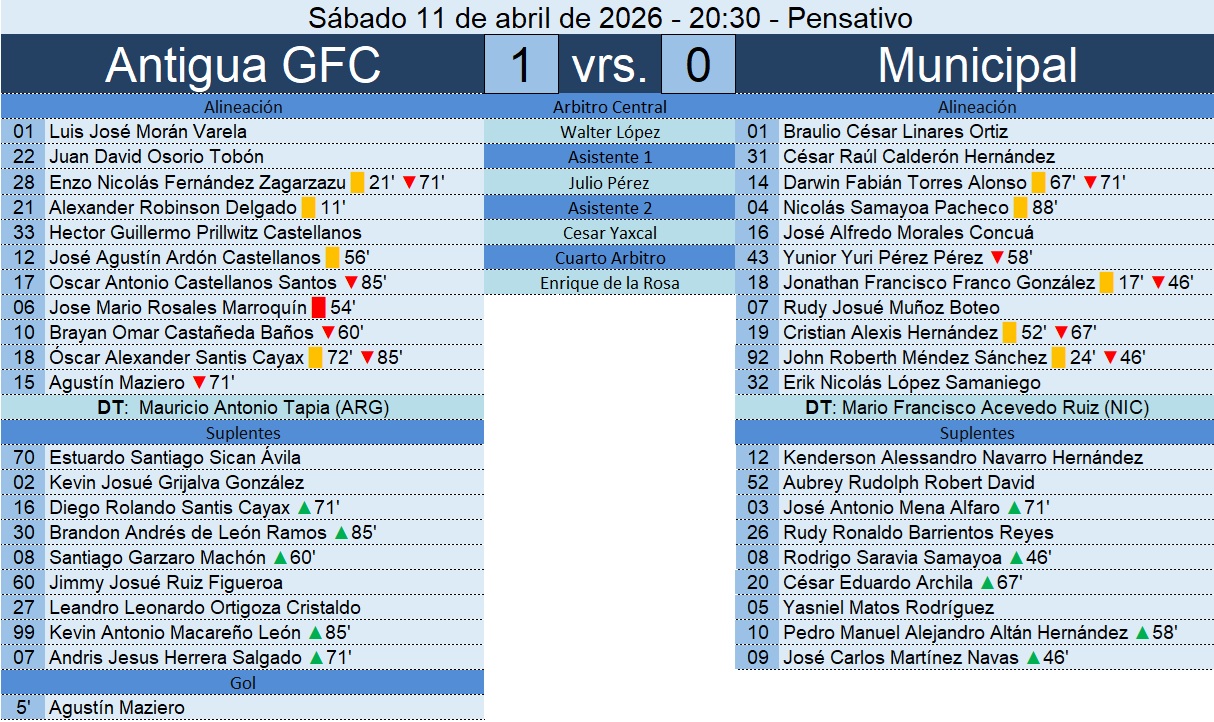 Liga Nacional – Jornada 19 – Antigua GFC 1-0 Municipal – 11/04/2026