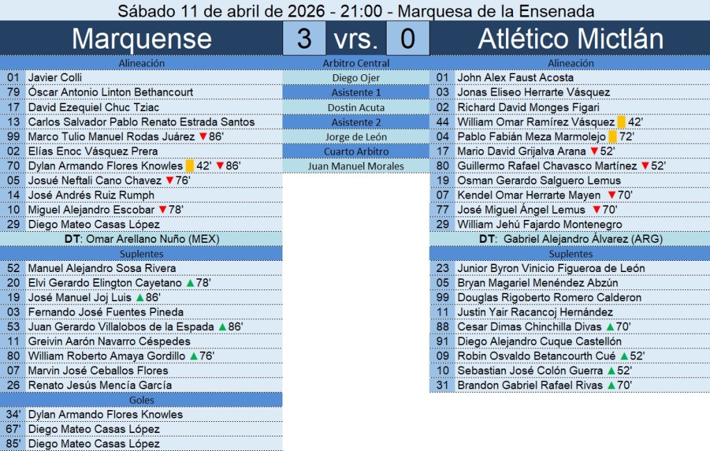 Liga Nacional – Jornada 19 – Marquense 3-0 Atlético Mictlán – 11/04/2026