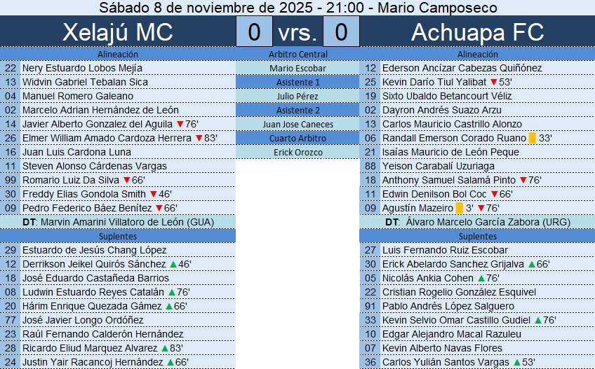 Liga Nacional – Jornada 19 – Xelajú MC 0-0 Achuapa FC – 08/11/2025