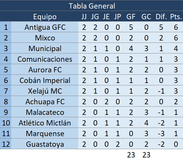 Estadísticas del encuentro entre Antigua GFC vs Marquense.
