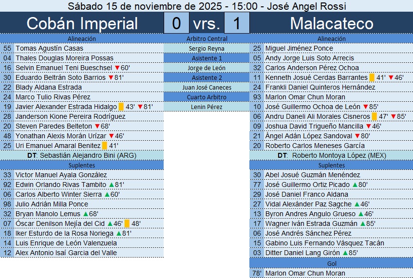 Liga Nacional – Jornada 20 – Cobán Imperial 0-1 Malacateco – 15/11/2025