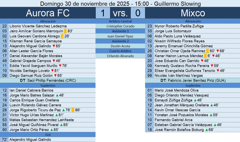Liga Nacional – Jornada 16 – Aurora FC 1-0 Achuapa FC – 29/03/2026