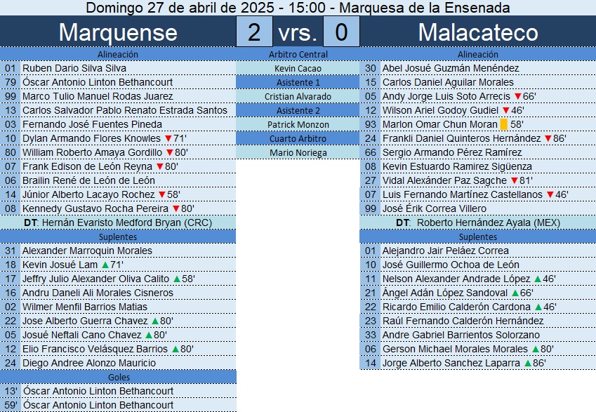 Liga Nacional – Jornada 22 – Marquense 2-0 Malacateco – 27/04/2025