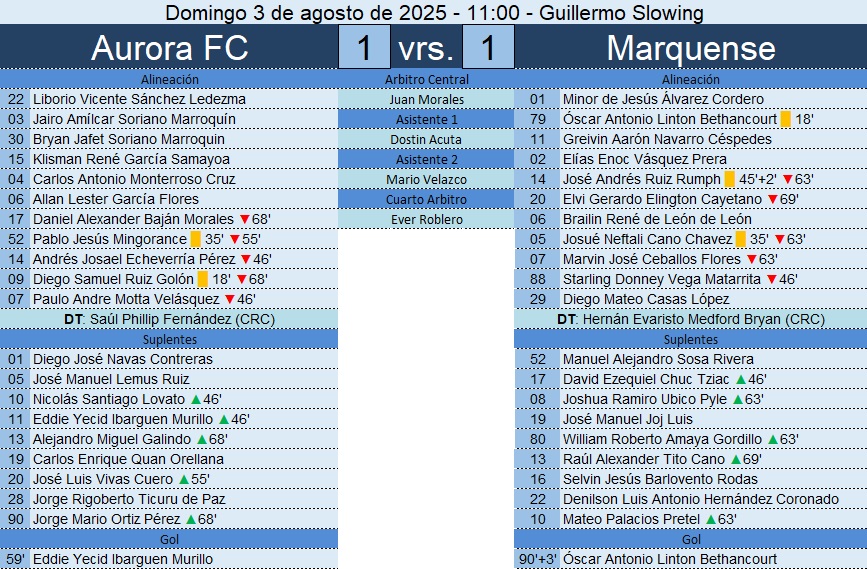Liga Nacional – Jornada 3 – Aurora FC 1-1 Marquense -03/08/2024