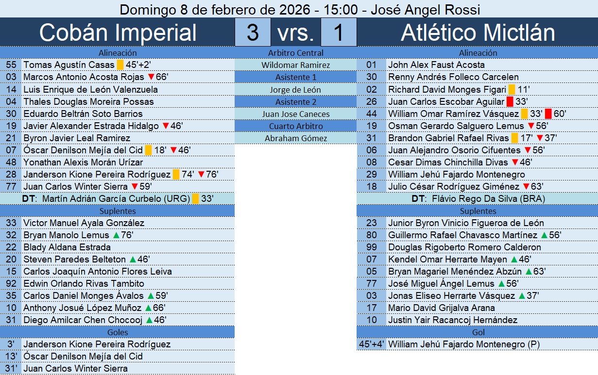 Liga Nacional – Jornada 5 – Cobán Imperial 3-1 Atlético Mictlán – 08/02/2026