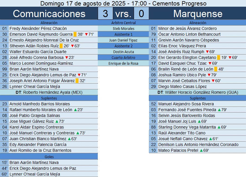 Liga Nacional – Jornada 5 – Comunicaciones 3-0 Marquense – 17/08/2025