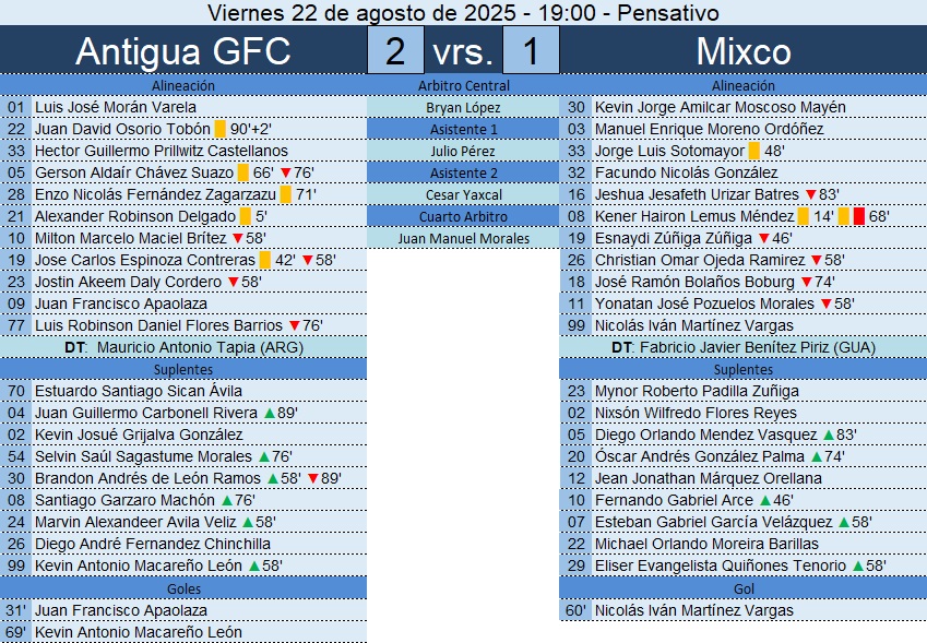 Estadísticas del encuentro entre Atlético Mictlán vs Aurora FC.