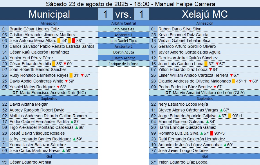 Liga Nacional – Jornada 6 – Municipal 1-1 Xelajú MC – 23/08/2025
