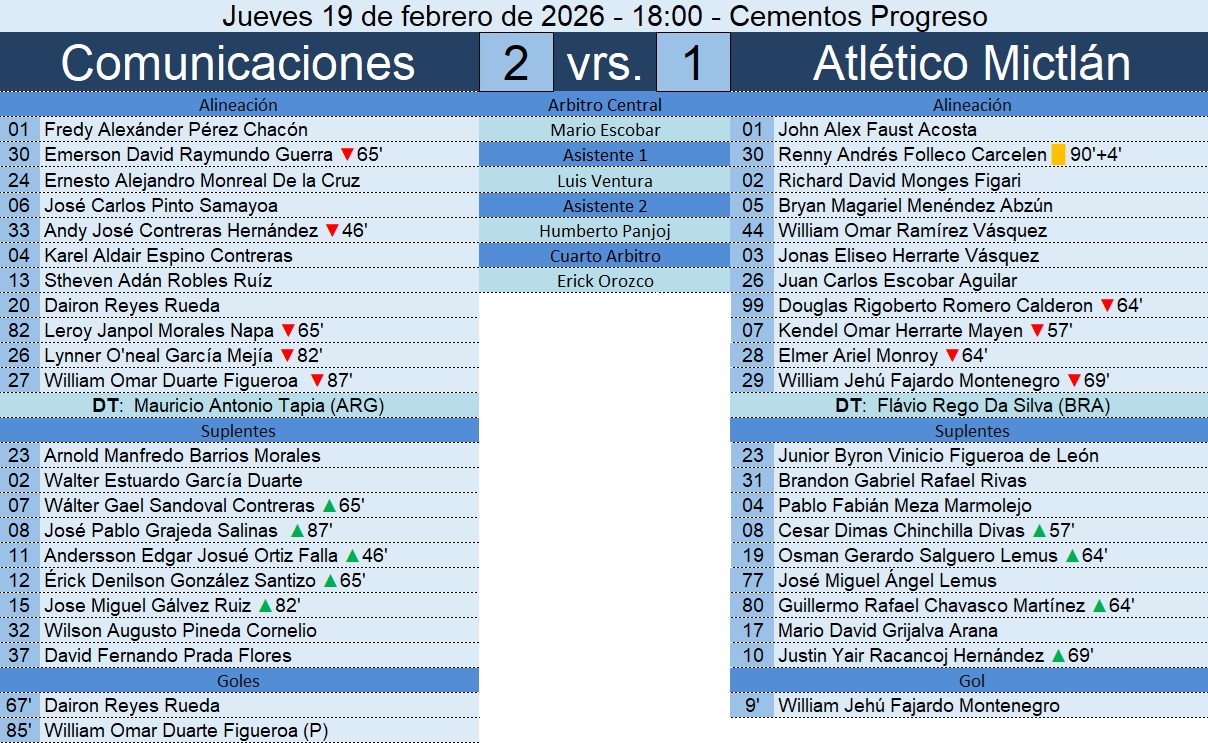Liga Nacional – Jornada 7 – Comunicaciones 2-1 Atlético Mictlán – 19/02/2026