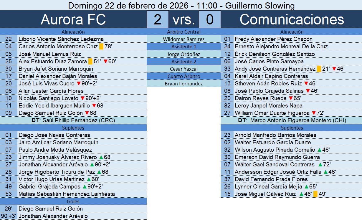 Liga Nacional – Jornada 8 – Aurora FC 2-0 Comunicaciones – 22/02/2026