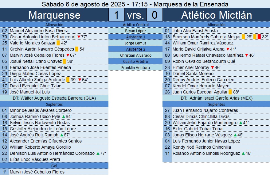 Liga Nacional – Jornada 8 – Marquense 1-0 Atlético Mictlán – 06/09/2025