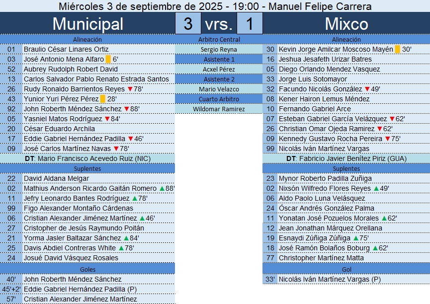 Liga Nacional – Jornada 8 – Municipal 3-1 Mixco – 03/09/2025